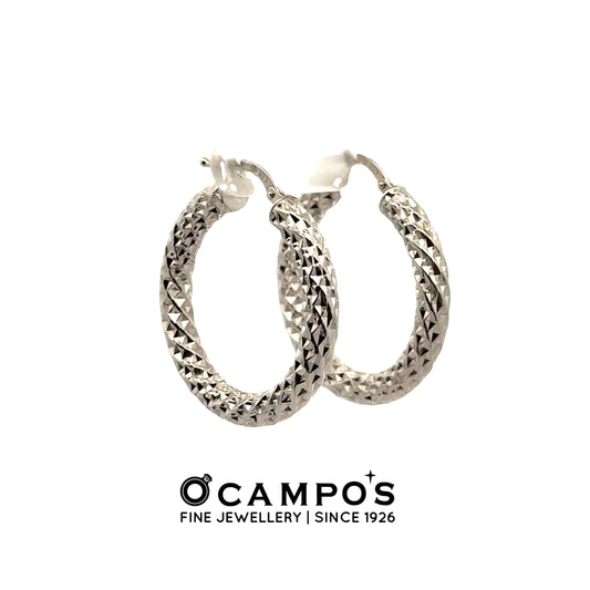 Elidia 18 Karat White Gold Hoop Earring Diamond Cut Design