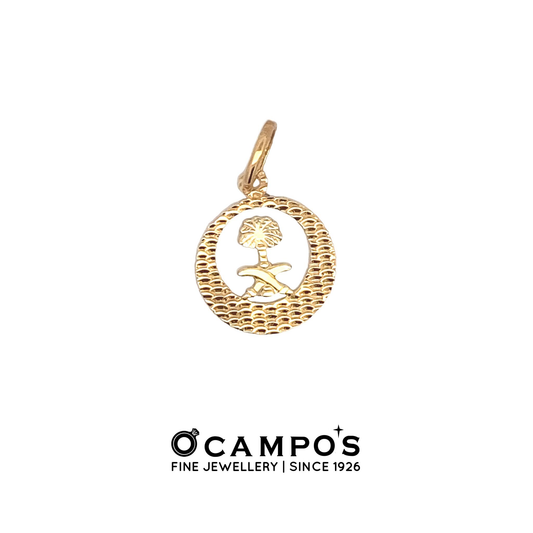 Glinthea 18 Karat Yellow Gold Round Pendant with Tree Design