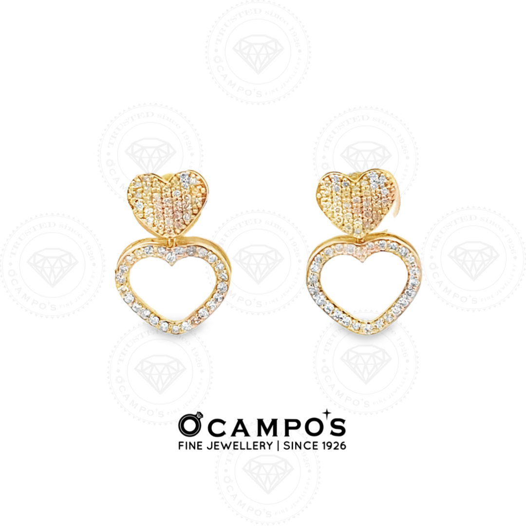 This exquisite pair of earrings features a timeless design crafted in 18 karat yellow and gold, adorned with delicate heart-shaped studs. The earrings are elegantly designed with a detachable feature, allowing versatility in wear. Each earring showcases a meticulously set array of 114 diamonds totaling approximately 0.50 carats. The diamonds are carefully chosen for their clarity and brilliance, adding a captivating sparkle to the piece. The craftsmanship is evident in the intricate detailing of the hearts and the secure setting of each diamond, ensuring both beauty and durability. These earrings are designed to be a symbol of sophistication and elegance, perfect for both formal occasions and adding a touch of glamour to everyday wear.